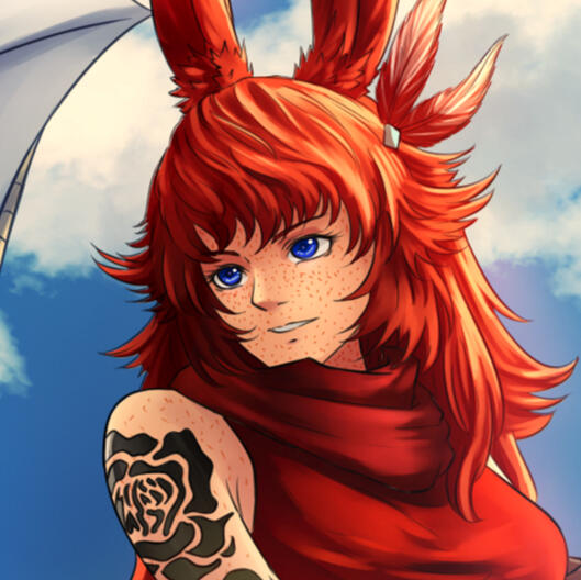 Rory is a very energetic, free spirited mercenary pilot who often bounces from one place to another, looking for work opportunities. Those who had the pleasure or displeasure to work with her, can describe her as someone either recklessly stupid, or stupidly brave. She left her homeland at very young age, refusing to accept the harsh traditions her clan tried to enforce upon the Viera. Flying in the skies means everything to her, and she will fiercefully protect her last bastion of freedom. In private life she is very social and outgoing, although she tends to brew a lot of trouble and mischief especially when having few drinks too many. She also tends to brag a lot about her deeds, which often gets her into trouble and many, maaaany tavern brawls. True scoundrel with a strict moral compass.